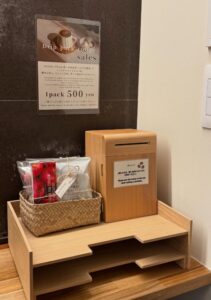 購入の際は横の箱にお金を入れてから商品をお持ちくださいませ。