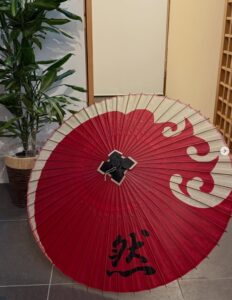 阿島傘は、長野県南部にある喬木(たかぎ)村に江戸時代から伝わる和傘です。 喬木村で阿島傘の伝統を受け継がれた女性職人さんを紹介いただいたご縁で、SAUNA VILLA 然の一字を入れたオリジナルの番傘を作っていただきました😊✨